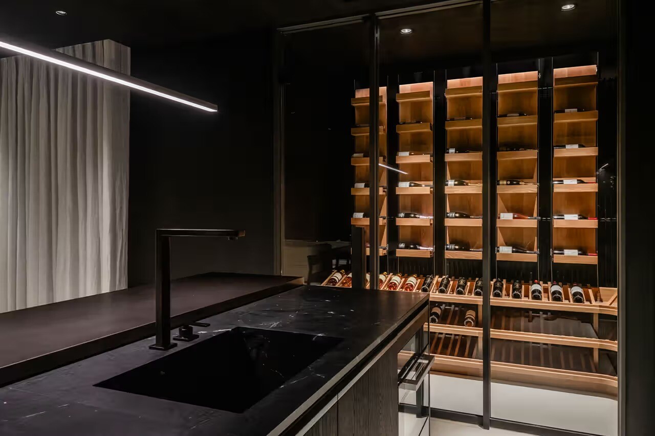 O interior da casa é um tributo ao luxo contemporâneo japonês, com um spa privado, simulador de golfe, adega climatizada e um sistema de som premium da Bowers & Wilkins. Os acabamentos incluem mobiliário da prestigiada marca italiana Molteni&C, revestimentos em madeira Hinoki no spa e cozinhas esculpidas em pedra vulcânica negra.