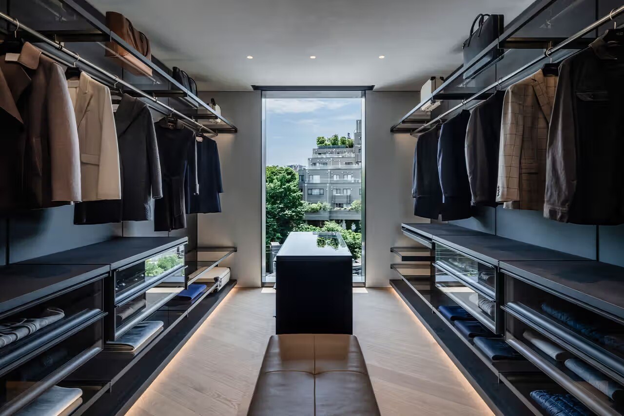 Com uma área total de 724 m², a residência impressiona desde o primeiro olhar. No seu interior, destaca-se uma escadaria escultural em aço, um terraço com spa, outro com vista privilegiada para a icónica Torre de Tóquio, e uma galeria automóvel de cortar a respiração — onde dois Aston Martins são exibidos como verdadeiras obras de arte.